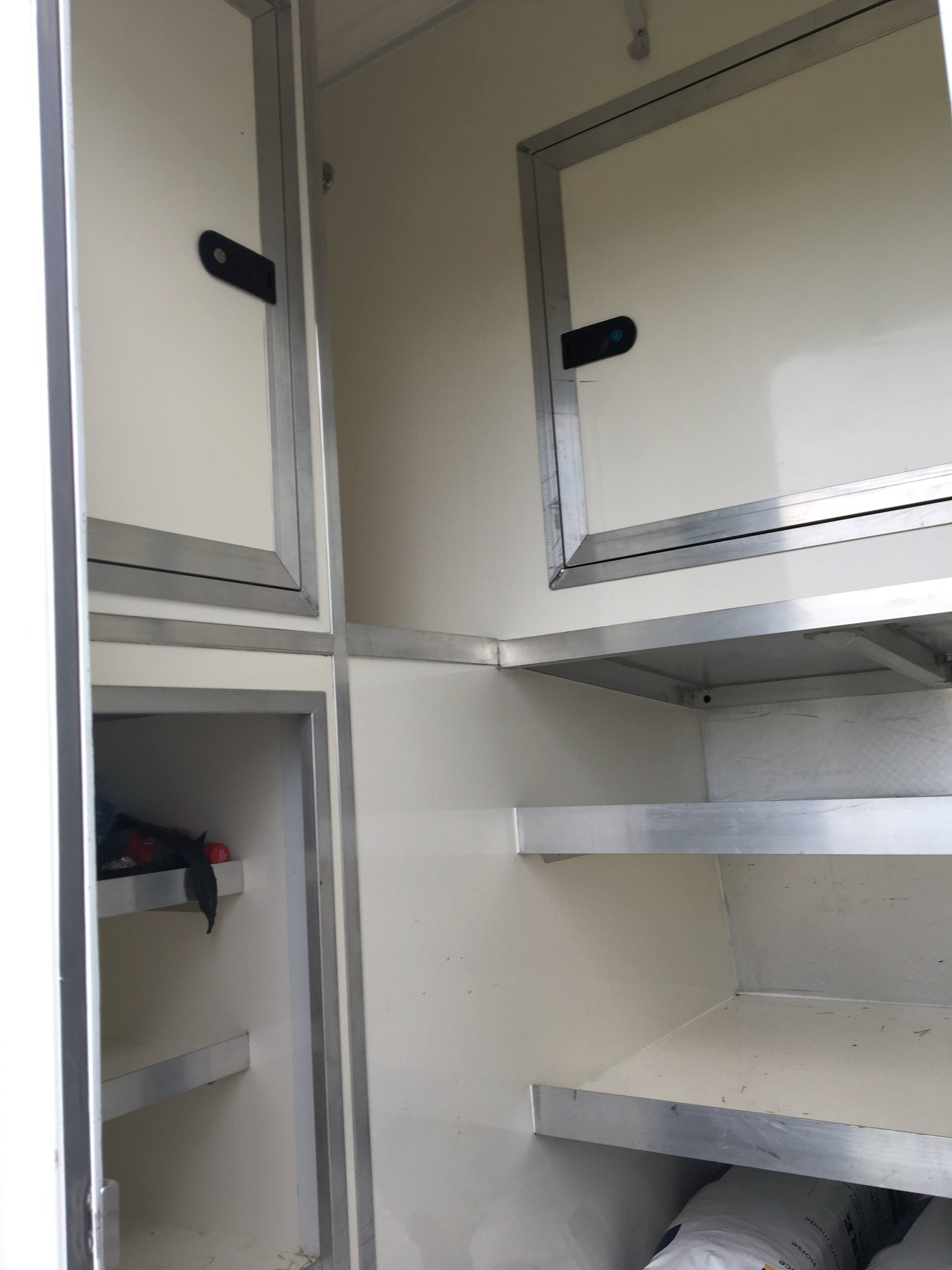 With this you can have cupboards, double burners, a wardrobe, telly, porta potti space etc etc, but there are weight implications and most people choosing this option will have their box uprated to 3.9 or 4.5 tonnes. Whilst we have a standard layout, we can individually tailor the design to suit you.