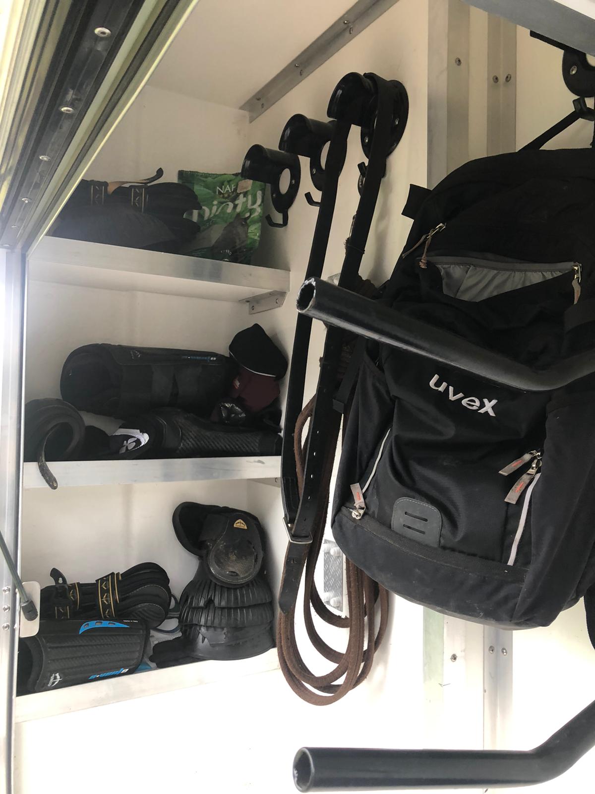 For professional people or serious competitors you can often need a box that is set up to provide your competition needs. The standard pro sport configuration provides just that. Carrying four saddles and numerous bridles there are shelves for boots bandages lotions and potions.